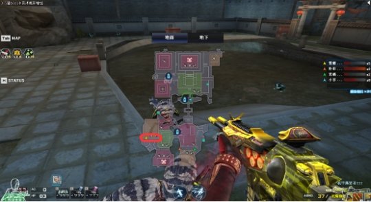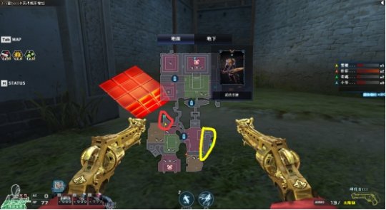 此点位就是地图中的红圈部分。此时你能打到下面的小怪,非远程攻击的小怪是打不到你的。所以先把远程攻击的小怪清了再打其他小怪。(如果你一个人实在招架不来远程攻击小怪,可以先退出小怪攻击范围,等小怪消失后再站屋檐等非远程攻击小怪出来即可)