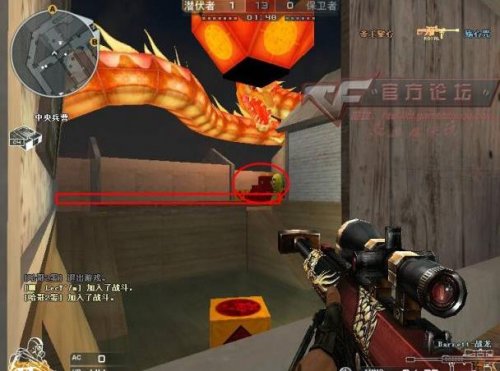 1、复活点出来走向A道,跳到A道旁边的箱子上面,对A道进行卡点预瞄。先扔一个烟雾或者闪光,使我们先顺利抢下点位,保卫潜伏双方有不少在A道对狙的狙击手。如图,有不少的保卫狙击手藏在图上方框箱子后面进行卡点,假设潜伏这方的狙击手没有炮不能一枪穿死躲在箱子后面的敌人。那么自己就有可能被反杀,所以如果打这个点位的话。一就是用炮穿死他,二就是快一步抢下A道的点位进行卡点预瞄。