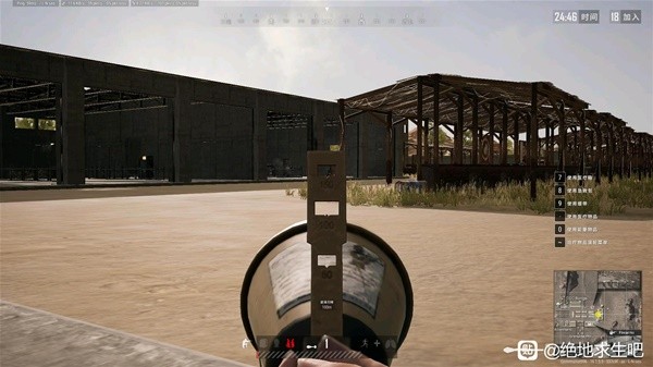 找到目标后右键瞄准,然后使用整个瞄具最上方的地方对准敌人(图二画圈的地方)发射即可。在这个距离内使用该瞄准方法几乎不会打偏,会直接射到敌人身上。但需要注意几点: