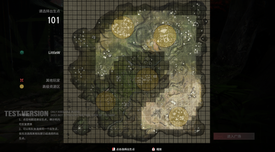 目前游戏的模式有“天选之人”模式(也就是“吃鸡”模式)以及“无尽试炼”模式,在“天选之人”模式中。选玩游戏角色之后,我们就来到了喜闻乐见的选择出生地点的环节,高品质素材掉落地区也会在地图上标明。