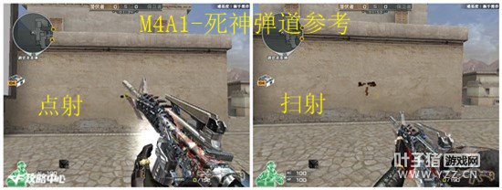 M4A1-死神的弹道在原先的攻略中有提及:所有英雄级M4的弹道均是相同的。但持有死神时还是能主观的感觉到该款枪枪体较轻,在点射时的弹道更易控制;而要想将死神的真正威力发挥的淋漓尽致,点射一定是必修课:死神的点射与M4A1-S的手感较相似,前三发子弹精准,但在后期弹道已经飘起后想要控制枪体绝非易事。点射的节奏和准度要通过大量练习才能提高,扫射对于整个M4A1系列而言都不是发挥威力的最佳手段;除非距离非常近,不然不要轻易尝试死神的压枪扫射哦。
