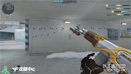上图为武器升级到3级的状态,外观方面变得更加炫酷,纯银的枪身镶上黄金缎带,显得格外华丽,功能上也较之普通AK强上不少,经验值增加20%,载弹量也额外增加了一颗。