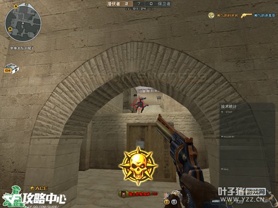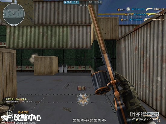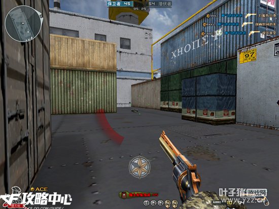 爆破模式中复活后2秒左右是无法移动的,但是可以切换武器!这个时候切换到合金左轮把模式切换成扫射状态,若是在接下来的战斗中主武器打完个弹匣里面切换成合金左轮又扫射。敌人一脸懵逼,手枪还能扫射? 手枪在近距离威力巨大,就比如图中这个点是很容易发生的事情,若是用M4这些枪射击敌人头部是无法一枪秒杀的。若是没有做到一枪秒杀这个地方多为狙击手,反应过来就被狙掉非常尴尬。然而手枪在这个距离是完全可以一枪秒杀的!