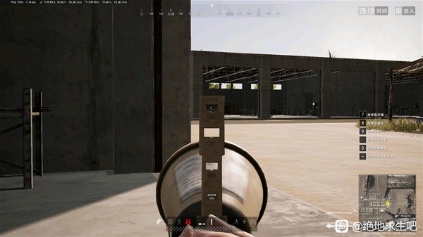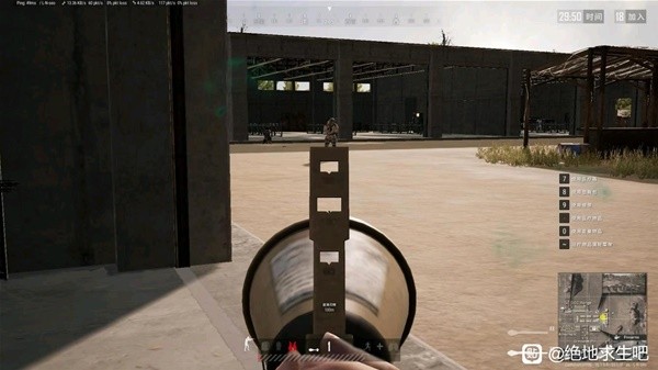找到目标后右键瞄准,然后使用整个瞄具最上方的地方对准敌人(图二画圈的地方)发射即可。在这个距离内使用该瞄准方法几乎不会打偏,会直接射到敌人身上。但需要注意几点: