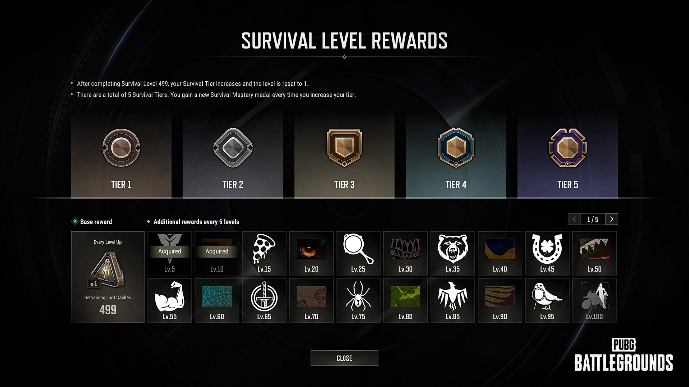 新奖励常规奖励:无论玩家的生存段位是多少,今后每次升级时玩家将不会再获得原本的BP奖励, 而是会获得补给物资箱作为代替。(最多可获得499个补给物资箱。)
