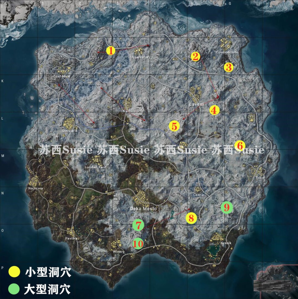绝地求生的维寒迪地图中有多个北极熊洞穴,可能有些玩家还不太清楚在哪里,那么下面小编就给大家带来绝地求生维寒迪北极熊洞穴位置汇总,感兴趣的小伙伴一起了解一下吧。绝地求生维寒迪北极熊洞穴位置汇总 维寒迪北极熊洞穴 地图标注: 洞穴分为两种,有大型的和小型的,我分开作为标记,地图上有一些没有物资和熊的洞穴我就不标记在里面了。