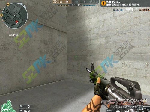 通常情况下,这种时候是逆风,那么敌人最最常见的就是从A大道直冲A门,因为这样攻击最快,最有效率,这种时候你的作用就体现出来了,敌人来之前,手雷和闪光弹对A门的火力准备是必不可少的,不要紧张,这些东西连你的毫毛都伤不到,你只要静静的等着爆炸过后,算好时间,大概3-5秒这样,把你的手雷从A门丢个转折雷进去,一般都会有所收获,炸不死也炸残,这种时候敌人一定会稍微缩一下,不要去A门,继续回你的墙角呆着,听脚步,敌人不见有人出来,一定会继续往A门里面进,看到人以后让狙击手射击吸引注意力,敌人必然闪出来去攻击狙击手,这种时候就是你发挥的时候了,你和你的小伙伴给个闪光弹,然后闪出去,这是要干嘛?当然是收割啊少年,最起码3个人头入手。