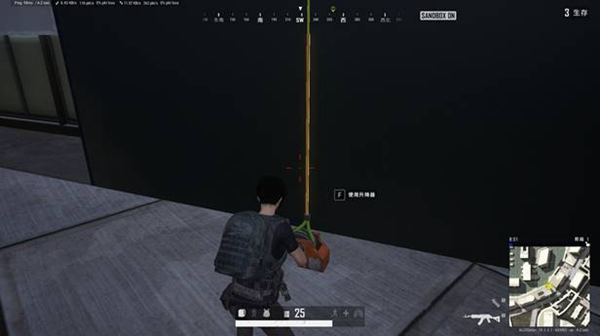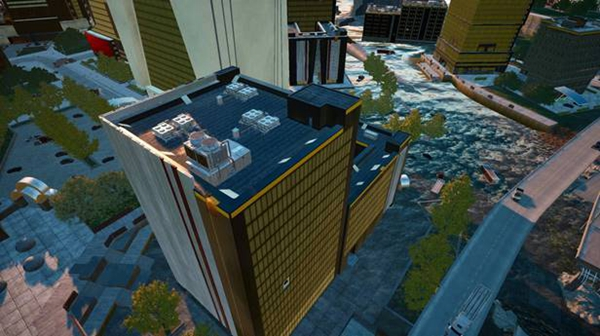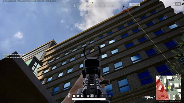 我们先对大楼的窗口按鼠标中间进行标点。然后我们再用大楼边上的升降器上到顶楼。