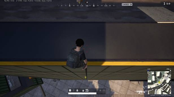 直到人物脚的位置距离窗口还有大概两个窗户那么高度高的时候,按W往大楼上贴。