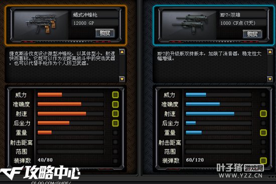对比数据图可见蝎式冲锋枪属性非常强悍,威力与准确度均超过MP7双雄!射速与MP7双雄相当,玩过MP7的玩家都知道MP7的射速是多么的快。MP7双雄更是如此,射速快到没朋友! 由于MP7双雄威力太小,现在几乎没几人记得这把射速极快的冲锋枪了!