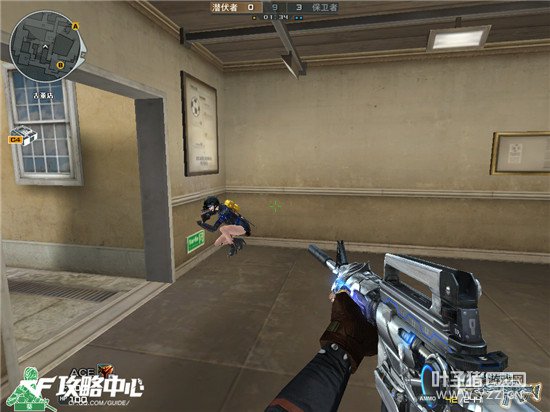 A区楼梯上这个点不是很反常规,并且也很好用,首先只要蹲下就行,不过不要冲着墙,因为这样在A门进来以后会看到,冲着杂物间这样也能防止中路转A的玩家偷你的背身,当你听到A门进来人以后,可以等着敌人都通过以后从楼梯上直接跳到A门这时他们已经都通过了,背身都是你的,这样的结果你一定很喜欢。