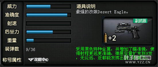 提到手枪,火线玩家们不由的会想到最为经典的沙漠之鹰系列,帅气的金属外观加上稳定的弹道和强大火力;若将沙漠之鹰技巧掌握后这把副武器完全可以成为狙击手或是紧急情况下的保命稻草和输出依靠。