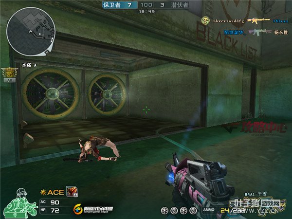 我方的战斗人员还是水路攻击为主,从水下进行进攻,来牵制对方地上的进攻,在水下的掩体也十分的多,也有很多的掩体,可以藏起来,等待合适的机会进行攻击。水路进攻的话,地图底下有强大的涡轮机,我们下到水里的一瞬间可以有很大的动能,这样的动能可以推动我们急速前进,快速游到安全的地方,对于我们的抢占先机,十分的有必要。有一点值得注意的是,水下的巨大涡轮机,只可能出去,不能回来,是不可逆的,所以这点要注意一下,如果遇到短兵相接,就不要后退到这里,因为这里是死路,要寻找其他的掩体,来进行躲避。
