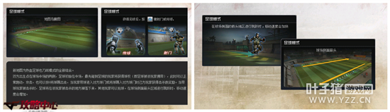 反观绿茵战场地图中,也是有诸多细节值得评说。玩家进入游戏后会根据阵容选择集中在球场中线的两边,而球的位置对于每一方对称位置的玩家都是对称的。开局后可以选择集体抢球或是直接退后防守;一般选择前者的较多。既然要拼抢足球,那就免不了一番争斗;玩家通过近身战斗的方式争取球权,随后可以通过G键传给队友方向。场地中不存在出界,球弹到边界会反弹,弹到地面会反弹,巧妙的利用反弹可以让皮球滚得更远且不容易被抢断哦。在官方介绍中的小提示也可以了解到当玩家带球走至边线的箭头处后,对移动速度会有加成,边锋的速度得到了充分的展现。