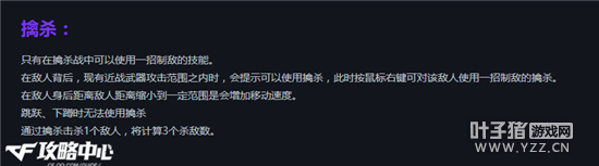 擒杀敌人最重要的就是偷袭,偷袭最需要的就是身法。擒杀需要的不仅仅是骗刀,正面如果能够擒杀敌人绝对需要走位与经验结合。大多数情况下擒杀对方可以通过侧面的偷袭来完成,这对于玩家的身法和对时机的把握有很大的要求。增加的三个杀敌数也无法与擒杀时刻的爽快相比,一个拿着近战武器的敌人被你近距离徒手秒杀,这样的感觉就好比爆破模式中刀杀对方,特殊战踢腿杀死对方;不仅证明了自己的技术并且很鼓舞士气。当然爆破模式中刀杀对方也要在有十足把握的情况下再浪,比赛的胜利的快乐要比刀杀的快感更持久。