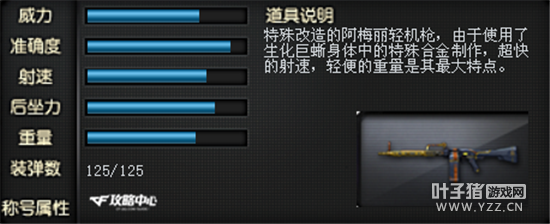 阿梅尔-合金,这款机枪通过打开目前正火热的挑战地图巨蜥峡谷获得的箱子可以免费领取;期限为7天,时间不可叠加。阿梅尔-合金并不像M249-幽灵一样有着右键可以增强射速的功能,但是小编绝对相信友友们一旦使用这款机枪,对于它的射速就已经无需过多要求了。