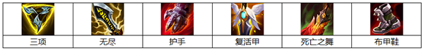三项+布甲鞋/水银鞋+无尽+护手+复活甲/绿甲+死亡之舞,这套出装既增加了英雄的攻击力,也增加了英雄的坦度,让诺手能抗能打。