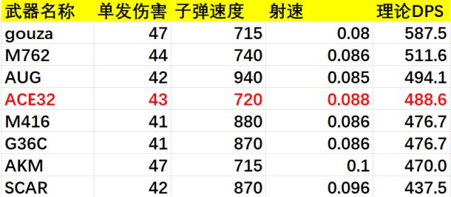 我们先把它的基础数据和其他全自动步枪进行比较: